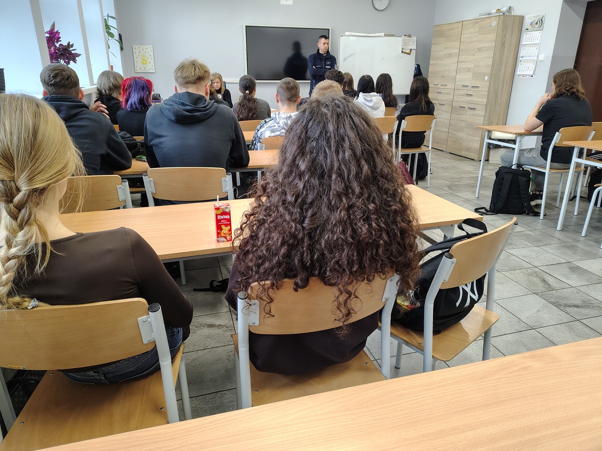Policjanci z Komendy Powiatowej Policji w Głubczycach spoptkali się z uczniami Zespołu Szkół Ogólnokształcących w Głubczycach, by porozmawiać o bezpieczeństwie. Podczas prelekcji funkcjonariusze wyjaśnili, jakie konsekwencje mogą ponosić za swoje zachowania, w tym za wykroczenia oraz czyny karalne. Uczniowie dowiedzieli się również, jakie środki wychowawcze mogą być stosowane wobec osób nieletnich oraz dlaczego tak ważne jest podejmowanie świadomych decyzji.