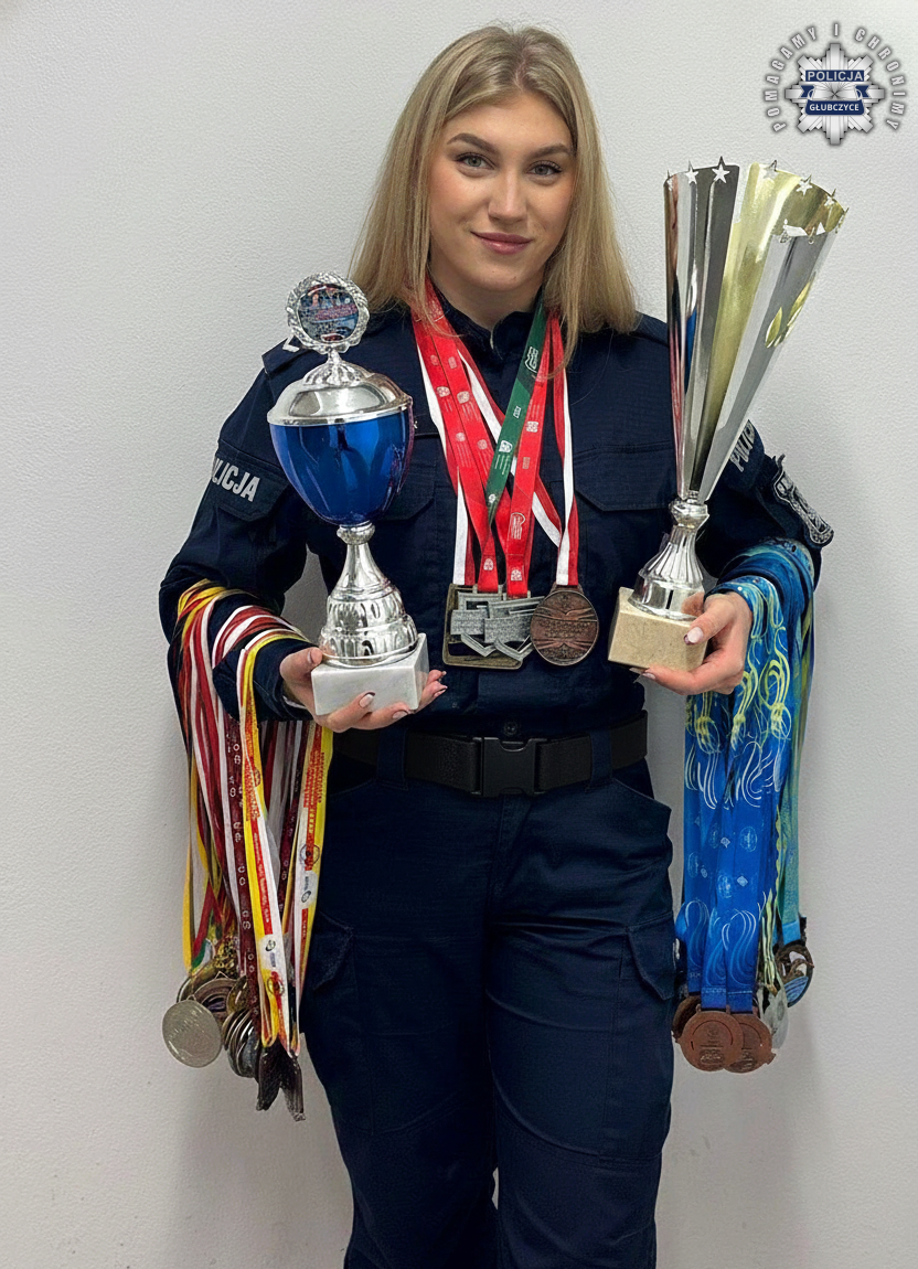Oliwia z powodzeniem rozwija swoje sportowe zainteresowania także w mundurze. W czerwcu br. reprezentowała Komendę Powiatową Policji w Głubczycach w Ogólnopolskich Zawodach Pływackich Służb Mundurowych organizowanych ku czci komisarza Wacława Lejko. Podczas zawodów zaprezentowała znakomitą formę, zdobywając dwa złote medale w konkurencjach na dystansie 50 i 100 metrów stylem klasycznym.