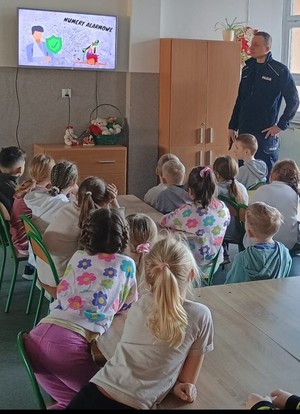 policjanci rozmawiali z najmłodszymi o bezpieczeństwie podczas zbliżających się ferii zimowych