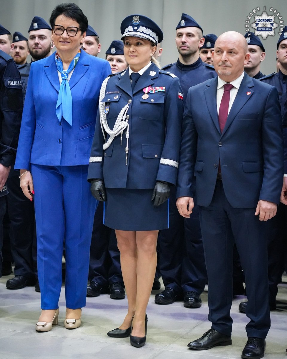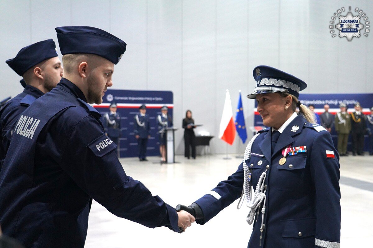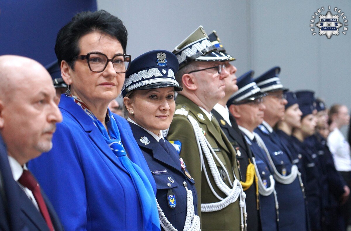 Ślubowanie nowo przyjętych policjantów oraz uhonorowanie doświadczonych funkcjonariuszy i osób wspierających formację - tak przebiegała uroczystość, która odbyła się w Centrum Wystawienniczo-Kongresowym w Opolu. Swoją policyjną drogę rozpoczęło dziś 55 nowych policjantów. Rotę ślubowania od nowych funkcjonariuszy przyjął Komendant Wojewódzki Policji w Opolu nadinsp. Magdalena Nguyen-Fudala. W wydarzeniu uczestniczył Wojewoda Opolski Pani Monika Jurek oraz zaproszeni goście reprezentujący służby mundurowe, instytucje i środowisko naukowe.
