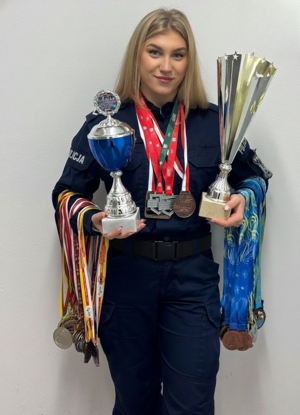 Sierżant Oliwia Mosek z Komisariatu Policji w Kietrzu to młoda policjantka, która w sposób szczególny łączy codzienną służbę z miłością do pływania. O mundurze marzyła od zawsze, a dzięki sportowi zyskała dyscyplinę i determinację – cechy, które dziś doskonale sprawdzają się w codziennej służbie. Oliwia jest przykładem tego, że zaangażowanie, konsekwencja i ciężka praca prowadzą do sukcesów zarówno zawodowych, jak i osobistych.